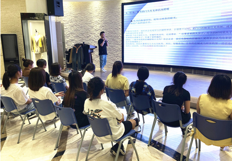 ▪ 新模式、新零售、赢在终端-骆豪服装集团超级导购培训会成功举办发表时间:2019-12-11 15:55 9月7日一9月8日 , 2020超级导购培训会在骆豪大厦顺利举办。 9月7日 了解品牌,突破自己 今年是骆豪品牌发展的关键年,回顾2020年前8个月日益残酷的市场竞争,行业冲击波已经出现加剧的态势,"强者更强、 弱者扶墙”, 在这样错综复杂的市场行情下,企业更应运 筹帷幄,迎势掌握商机。此次的超级导购培训,正是为了更好地运用"新模式”和"新零售”, 让骆豪|凹&|H|品牌男装赢在终端。 会议现场 此次会议,由骆豪商学院教官葛嘉豪主持,终端管理人胡金辉、营销总监王勇、陈列师阿光分别给大家讲解店铺相关业务、销售心态管理、梦想、超级演说家、陈列搭配等课程,帮 助新导购从技术上、心理上全面建立专业壁垒,更好地在实践中引导客户消费、推广品牌理念,让这些,成为终端[ J店提升业绩的利器! 值得一提的是,在各个课程之间,还穿插了各种好玩的小游戏,活跃气氛的同时,带来思考。 9月8日 理论与实践相结合 继7日的精彩课程后, 8日进行了会员管理、线上管理等课程,更进一步学习销售知识与技巧,并在下午立马将所学投入实践,举行了户外拓展PK ,效果立竿见影!